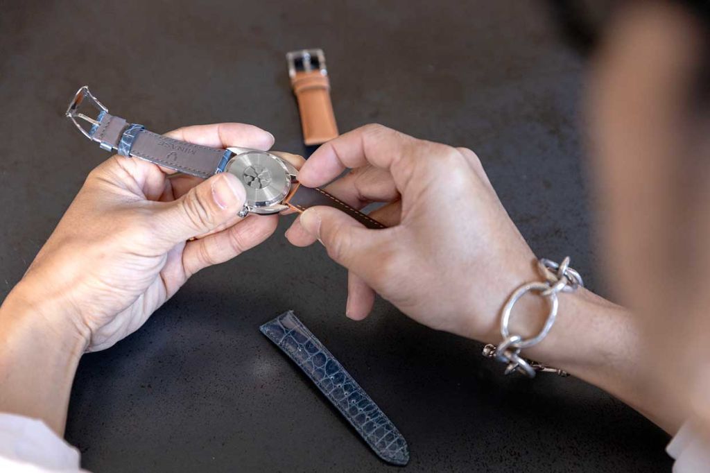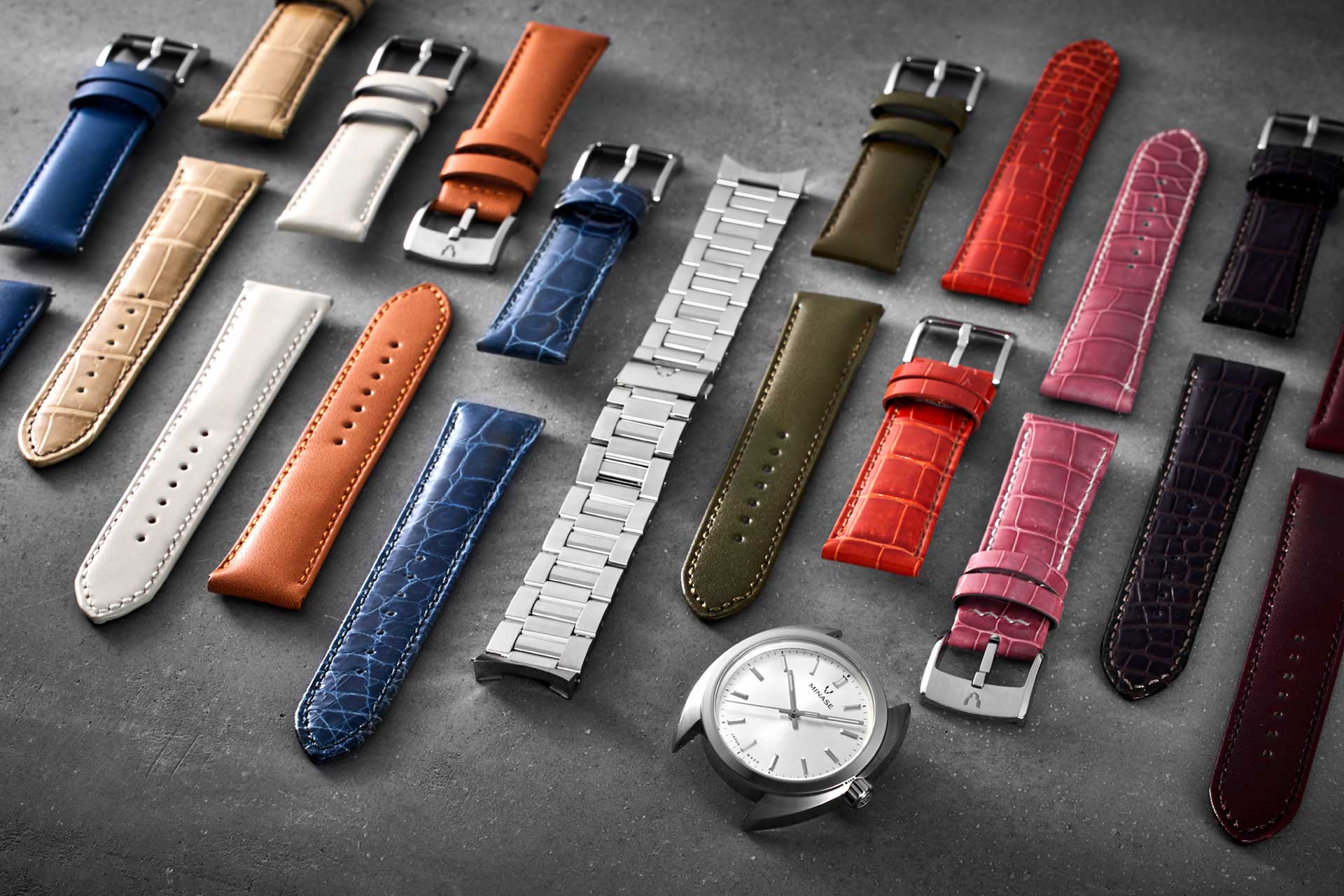 We offer four strap types: crocodile, smooth leather, rubber, and a bracelet type, totaling 25 patterns, including color variations.