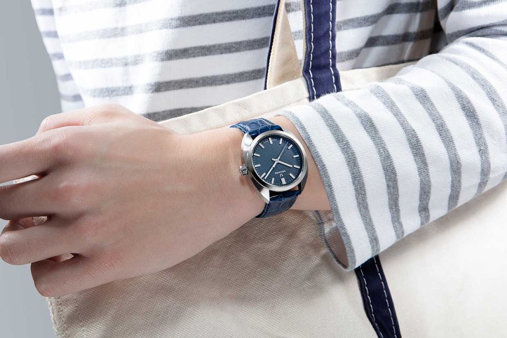 Like the surface of snow, this dial catches light from various angles and exudes profound brilliance. Five colors are available for selection.