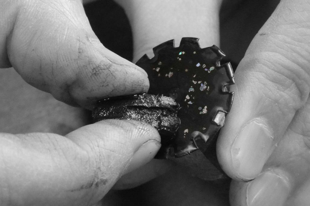 After that, Shibo-Urushi is applied on top and the shells are polished to complete the work.