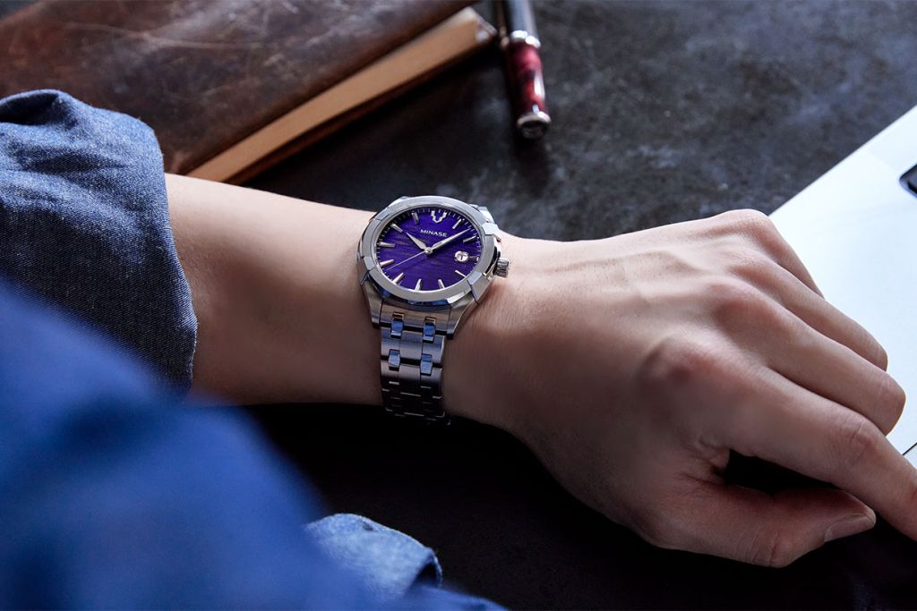 To express this beauty unique to Japan, MINASE launched the Uruga Collections. A unique clamping structure, unprecedented worldwide, is used to clamp the bezel, glass, and case together from both top and bottom using four prongs, making the entire watch look like a “uruwashii” jewel.