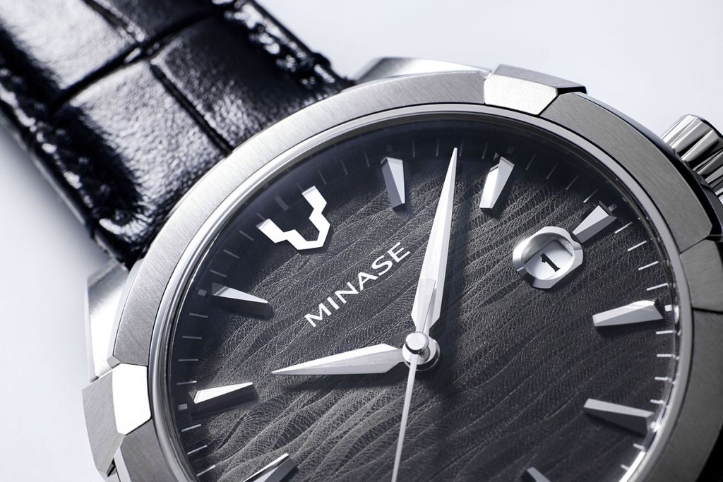 The horizontal gradation pattern on the dial is inspired by the glittering, languid waters of the Minase River, conveying an elegant, subtle and mature classiness.