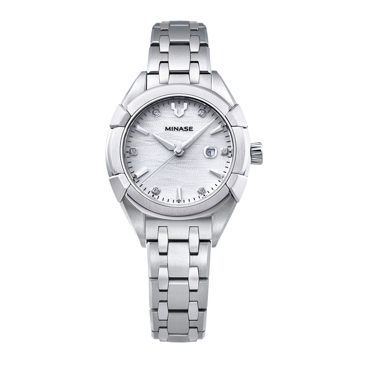 The horizontal gradation pattern on the dial is inspired by the glittering, languid waters of the Minase River, conveying an elegant, subtle and mature classiness.